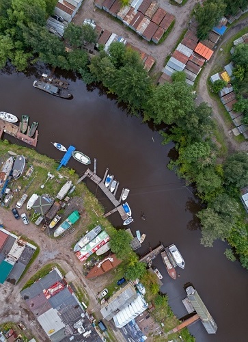 Береговая линия, оборудованная причалами и пантонами для швартовки катеров и яхт. В зимний период хранение на берегу